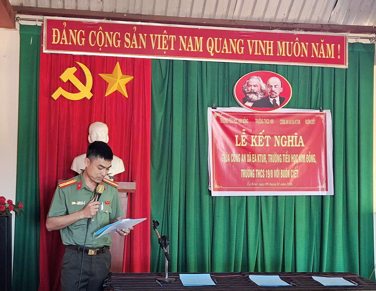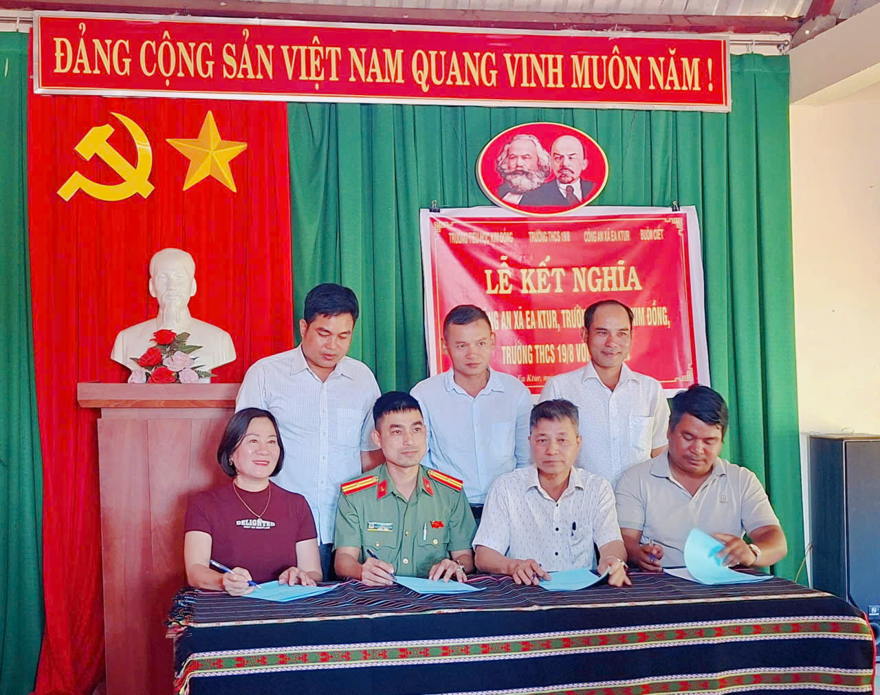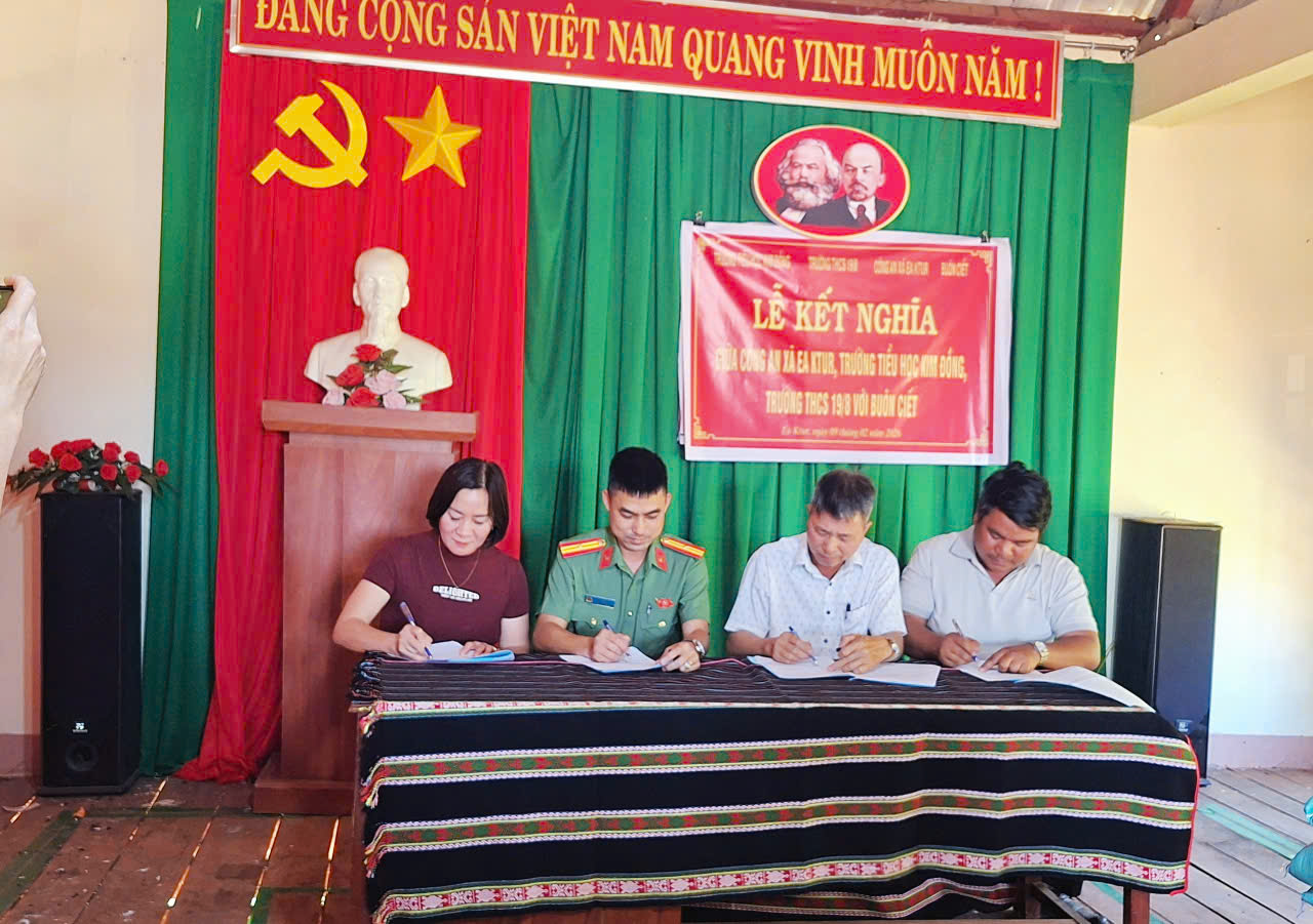 LỄ KẾT NGHĨA GIỮA CÔNG AN XÃ EA KTUR, TRƯỜNG THCS 19/8, TRƯỜNG TH KIM ĐỒNG VÀ BUÔN CIẾT GIAI ĐOẠN 2025 -2030