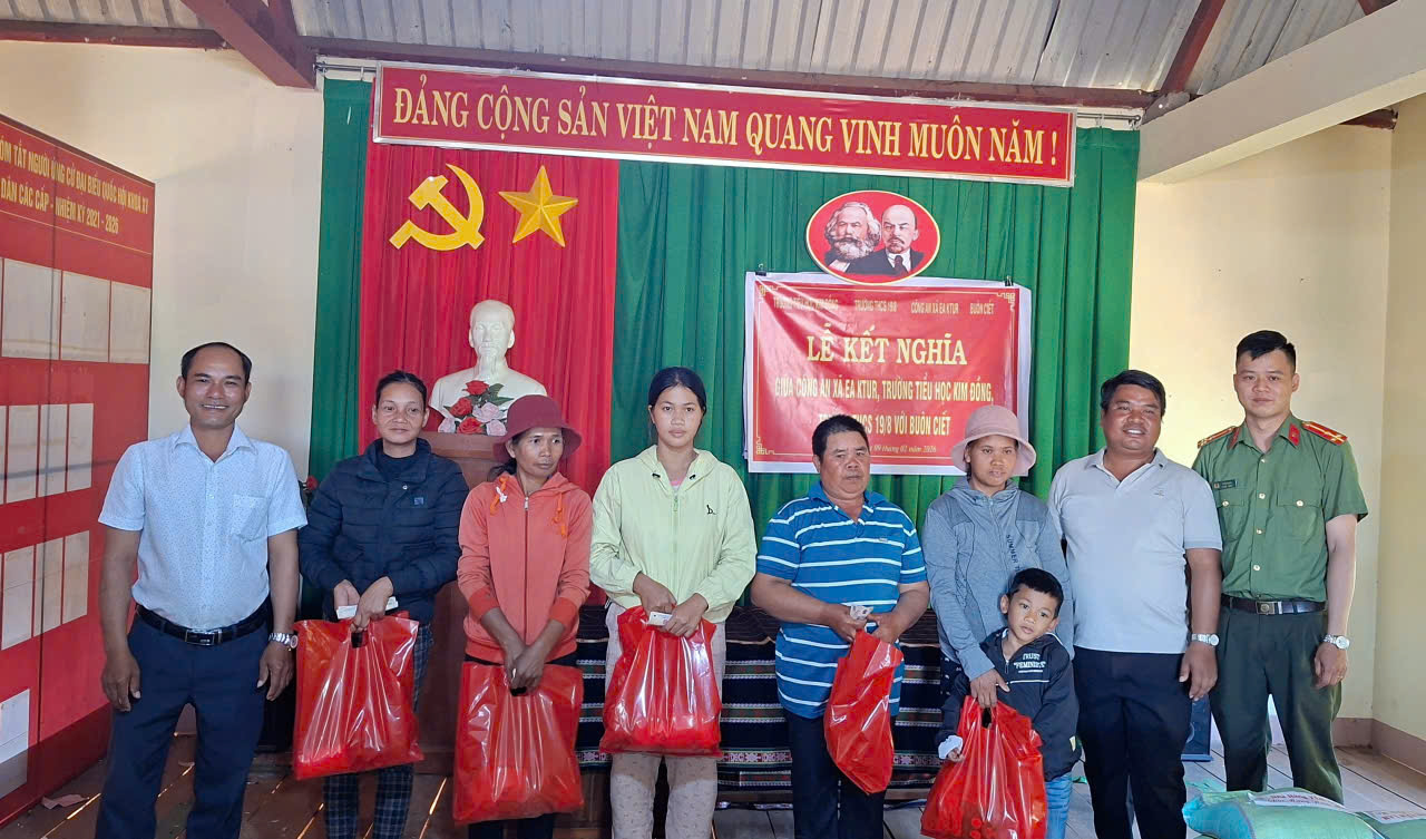 Chiều ngày 09/02/2026 tại nhà cộng đồng Buôn Ciết, các đơn vị trên và Buôn Ciết đã diễn ra buổi lễ kết nghĩa vô cùng trang trọng, ý nghĩa và đầm ấm.
